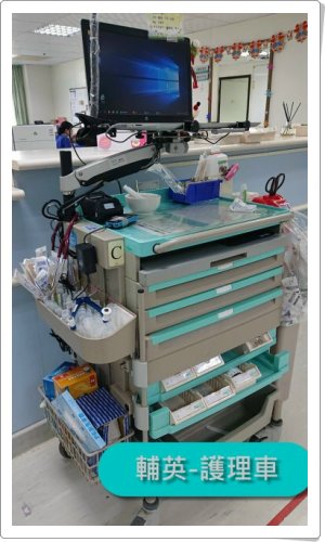 輔英醫院: 護理車+定位旋臂:筆電 |
